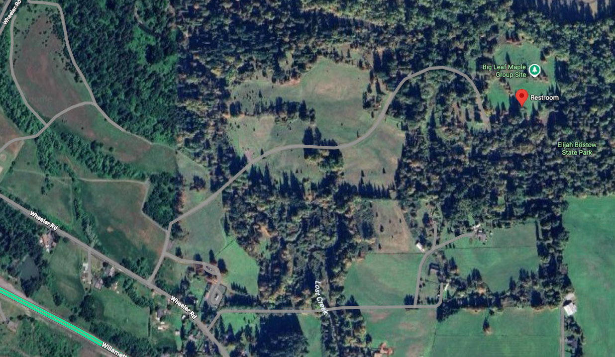 From Eugene, take I5 S toward Roseburg. Drive about 7 miles and take Exit 188 toward OR-58 Oakridge/Klamath Falls. Continue on OR 58 for about 10 miles. Turn left onto Wheeler Rd and follow the road until you reach the bathrooms/Big Leaf Maple Group Site.